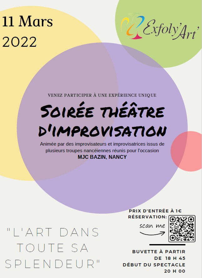 Festival d'Improvisation : place à l'éphémère ! Un lien unique entre les troupes de Nancy et d'ailleurs pour découvrir l'Art de l'imprévu. Le tout édulcoré avec : blind test, ateliers, musique, street food “faite maison” et de quoi trinquer en mode bière et jus de fruits artisanaux !